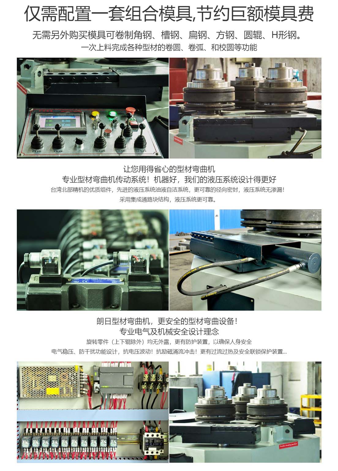 公司主要產(chǎn)品有:大、中、小型,型材彎曲機、 型材卷圓機、 法蘭成型機等型材彎曲設(shè)備。我們的優(yōu)勢:僅需配置一套組合模具,節(jié)約巨額模具費無需另外購買模具可卷制角鋼、槽鋼、扁鋼、方鋼、圓輥、H形鋼。一次上料完成各種型材的卷圓、卷弧、和校圓等功能。支持非標定制。